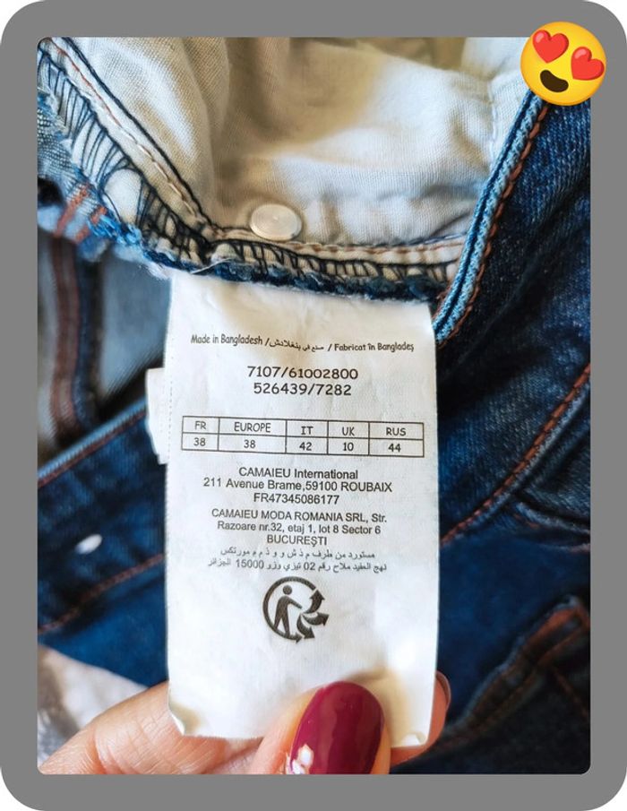 Jean court Camaïeu très bon état idéal pour la team petite taille 38. Dimensions et composition sur les photos. Pas de photos portées #flore37_femme_tailleM #jeans #jeancamaieu #jeancamaieu38