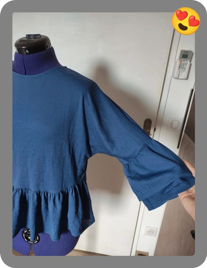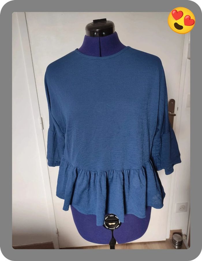 Tee shirt genre peplum Morgan bleu très bon état taille XS coupe oversize dimensions sur les photos Pas de photos portées #flore37_femme_tailleXS #Morgan #morgandetoi #morgandetoi34