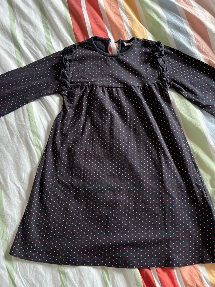 Robe bleu marine à pois rose fushia Taille 5 ans Coton majoritaire 96% U collection | U Essentiel Très bon état #liliesouris #dinan #saintmalo #combourg #ucollection #robe5ans #fille5ans #robeucollection #uessentiel #2025 #printemps #ete