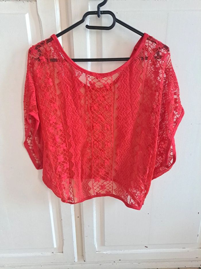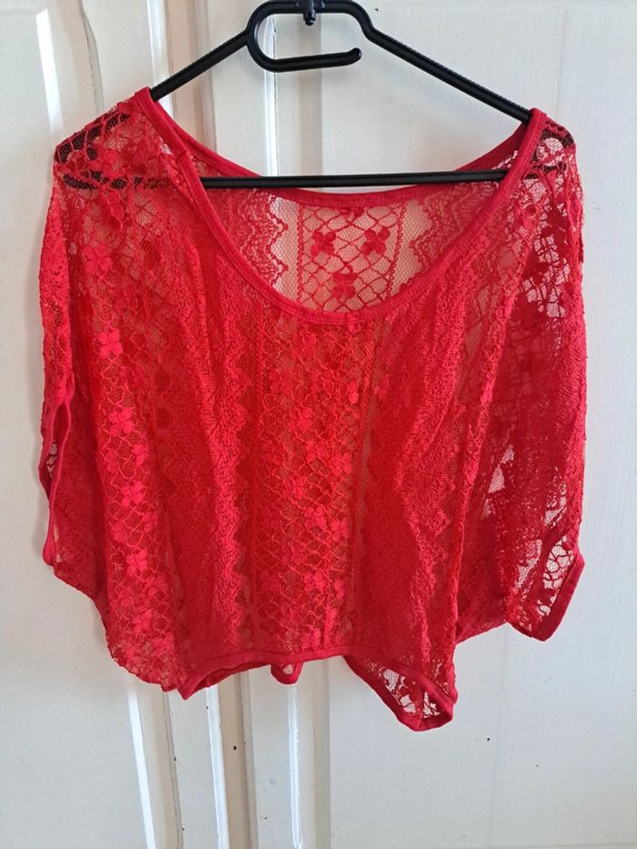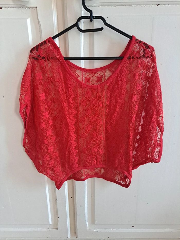 Blouse courte à dentelle rouge taille unique - photo numéro 1
