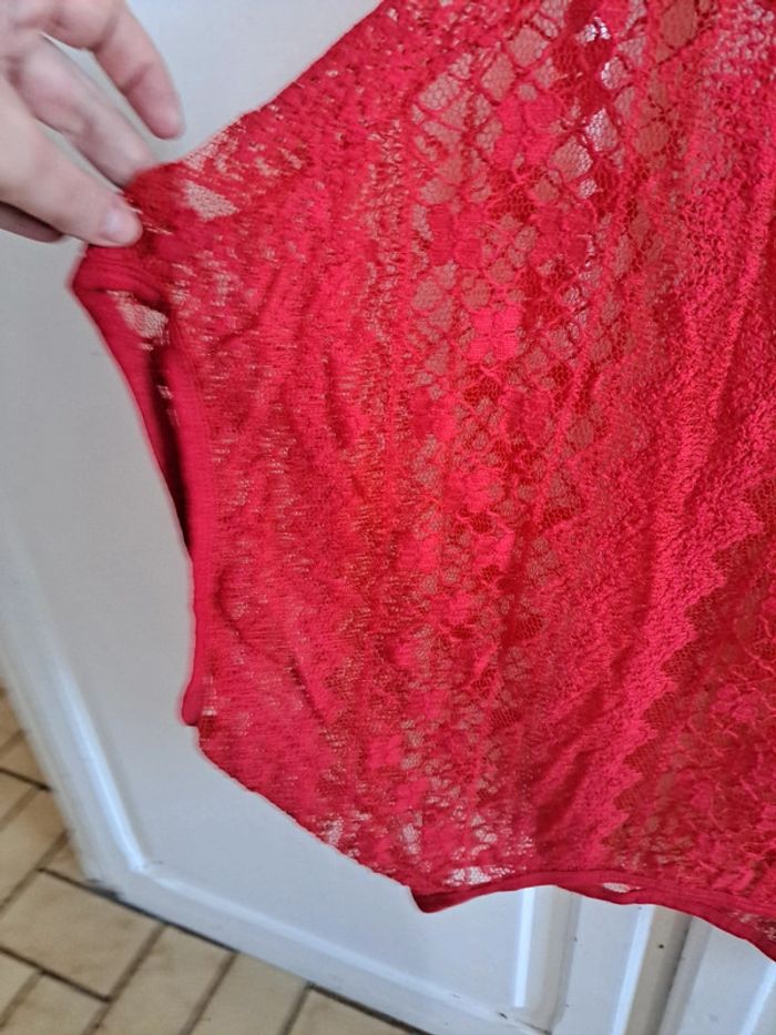 Blouse courte à dentelle rouge taille unique - photo numéro 5