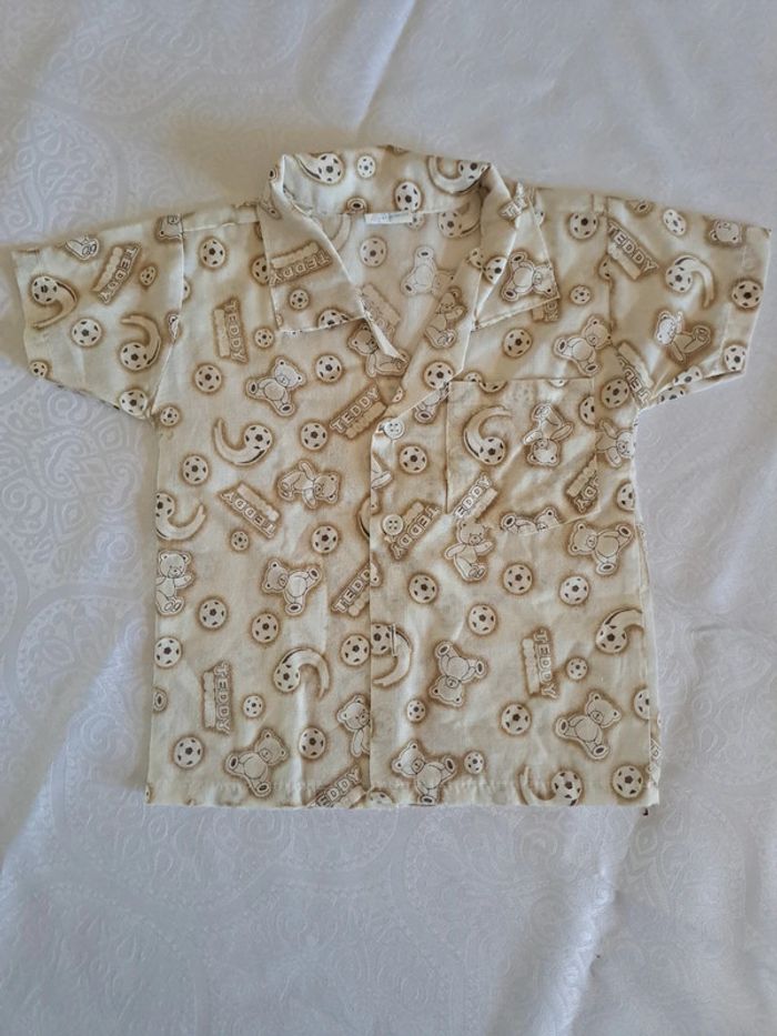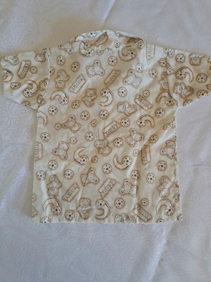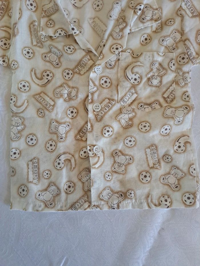Chemise manche courte beige ballon de foot et ourson 12 mois