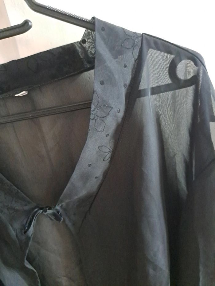 Pyjama sexy en voile noire pantalon chemise à dentelle L - photo numéro 9