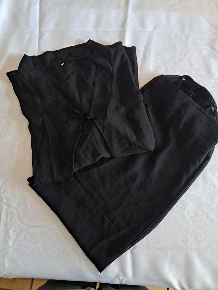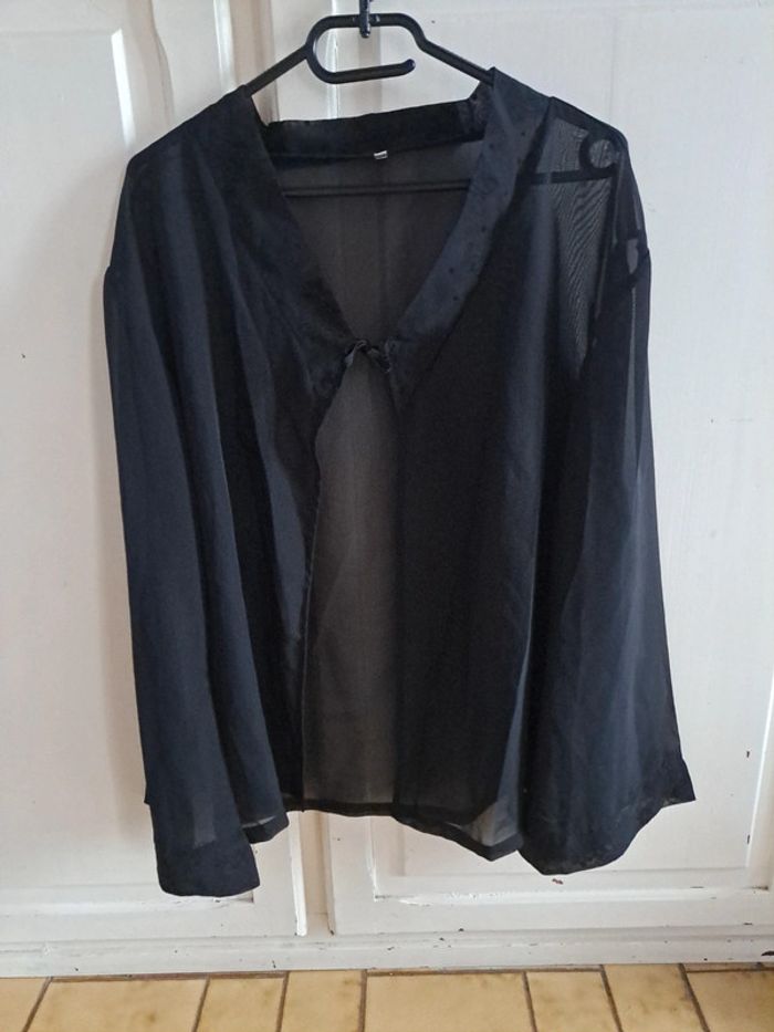 Pyjama sexy en voile noire pantalon chemise à dentelle L - photo numéro 3