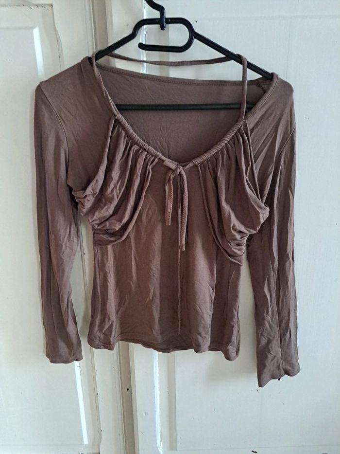 Top haut manche longue marron taille unique - photo numéro 2