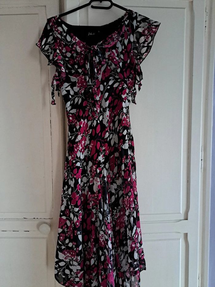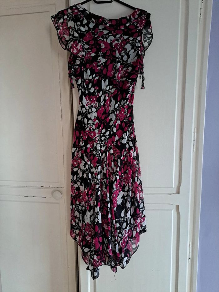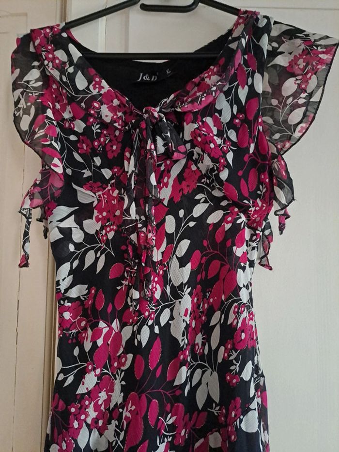 Sublime robe  fleuries rose fushia et noire XL - photo numéro 1