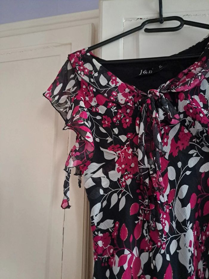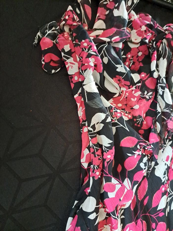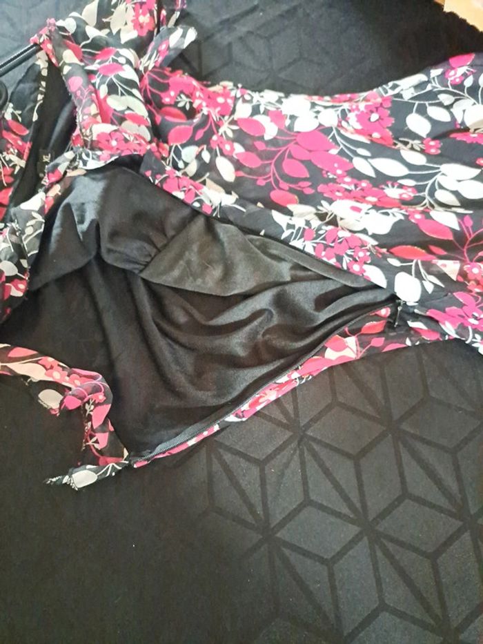 Sublime robe  fleuries rose fushia et noire XL - photo numéro 3