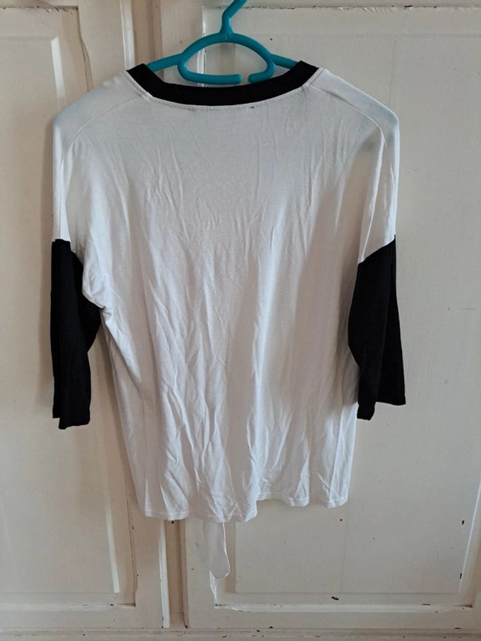 Tee-shirt manche 3/4 avec petit noeud blanc et noir taille 1 - photo numéro 2