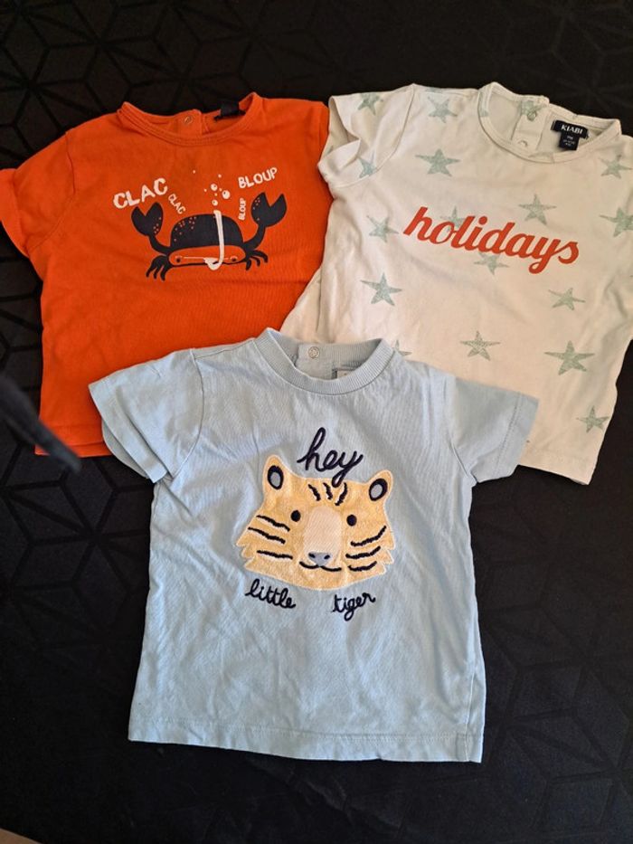 Lot de 3 Tee-shirt 9 mois blanc bleu orange - photo numéro 9