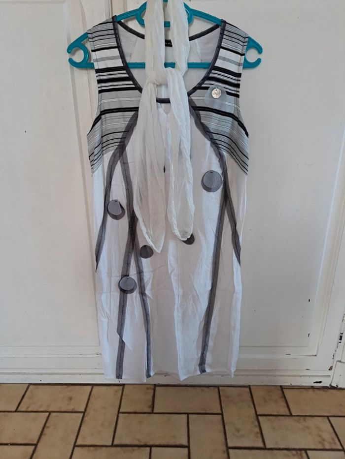 Superbe ensemble robe doublée blanche et grise, cardigan gris et son foulard blanc 38 - photo numéro 11