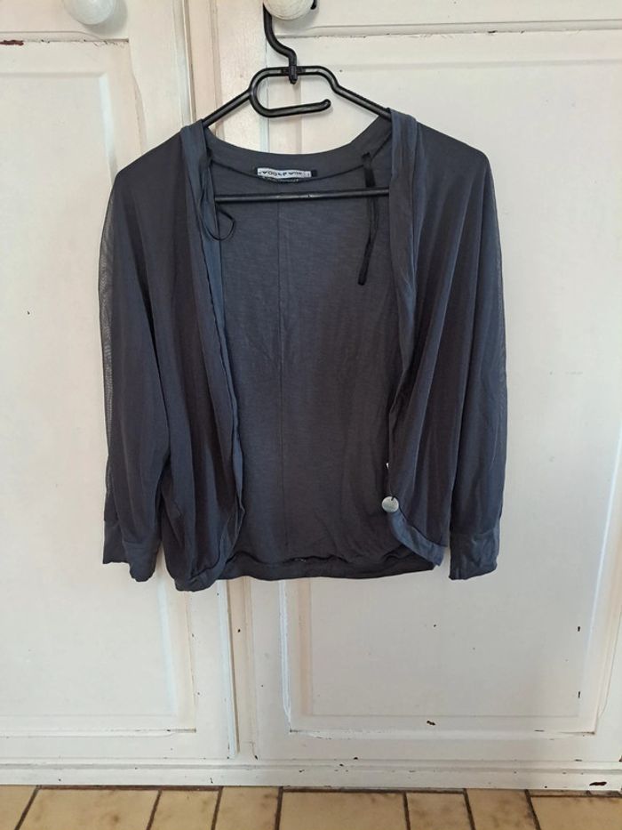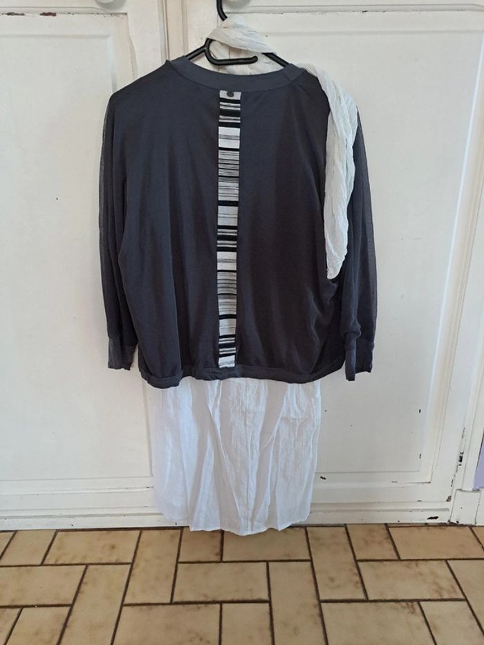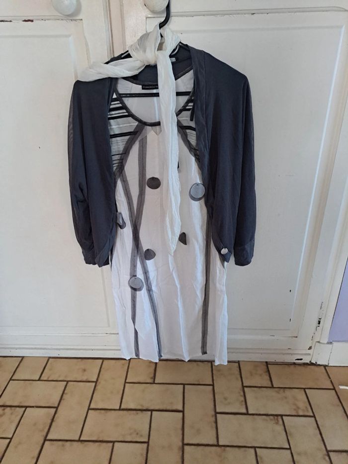 Superbe ensemble robe doublée blanche et grise, cardigan gris et son foulard blanc 38 - photo numéro 4