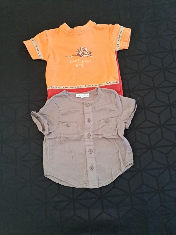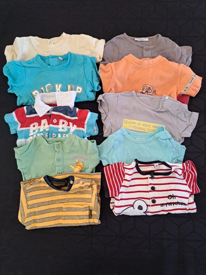 Jaune timberland bon état car quelques bouloches Rouge et blanc, très bon état Petit chemise kitchoun fluide et légère, très bon état T-shirt orange rouge kiabi, très bon état Gris et jaune, kiabi très bon état Bleu bonheur kiabi très bon état Kimbaloo jaune, bon état, pressions en très bon état. Bleu pick-up bon état car quelques bouloches. Vert Winnie très bon état Polo Bleu et rouge, bon état car le dessin imprimé commence à s'effacer. Boutonnière et pressions en très bon état Dressing trier par taille dans à propos Réduction par lot #sophythys_garçon_3mois