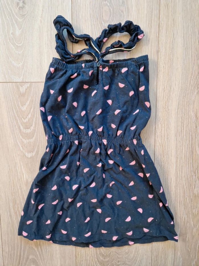 Robe été avec bretelles croisées, bouton à l'arrière, élastique à la taille et motif pastèque. Taille 6 ans mais taille petit. #sarahzajacfille5a
