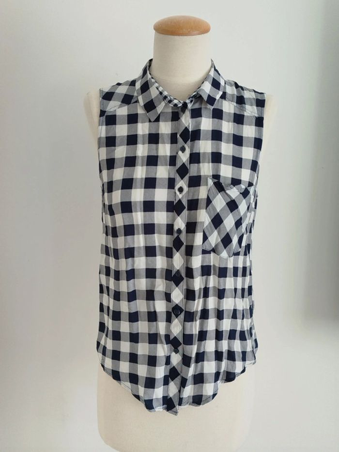 Chemise sans manches à carreaux bleu marine et blanc Bershka taille 38 - photo numéro 1