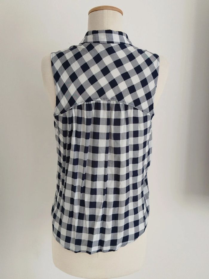 Chemise sans manches à carreaux bleu marine et blanc Bershka taille 38 - photo numéro 4