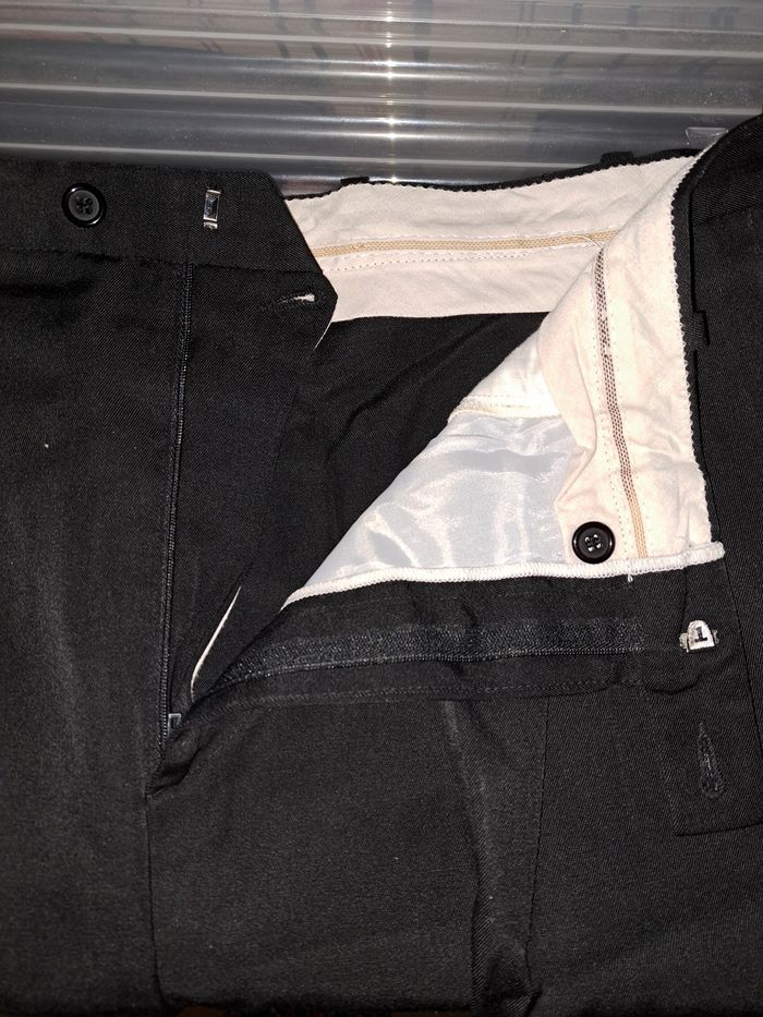 Pantalon homme Taille 50 Couleur noire 2 Boutons, 1 crochet et une fermeture éclair Poches latérales et 1 arrière 1 ourlet, longueur d'entre jambe environ 70 cm État impeccable