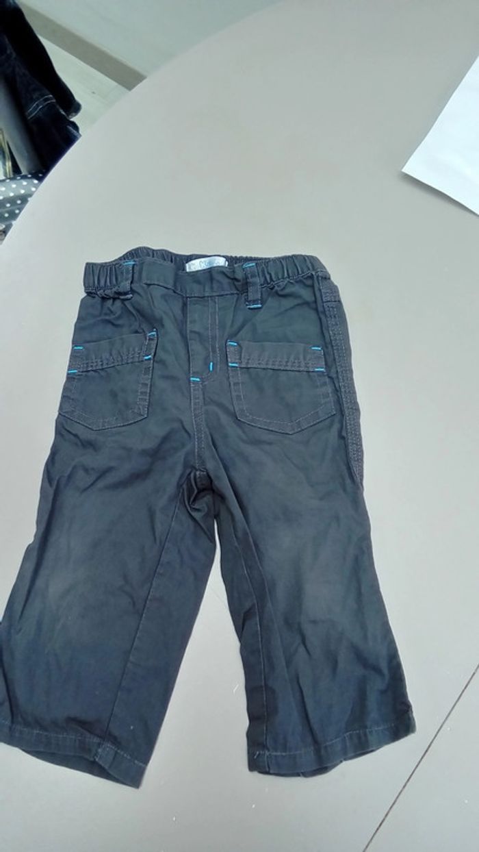 Ensemble pantalon marron t-shirt bleu mc 100 % coton