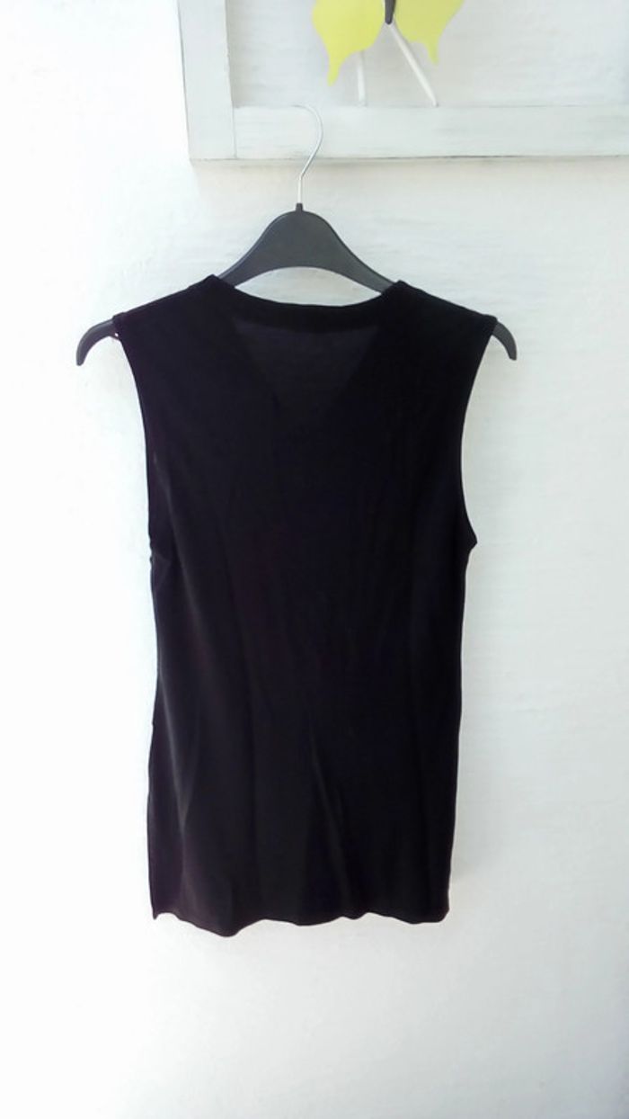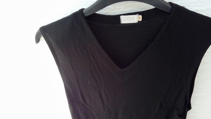 Tunique noire encolure V sans manche, acétate et polyamide hauteur totale 69 cm