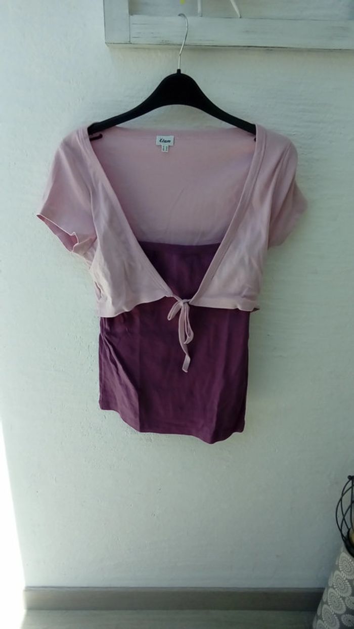 Débardeur intégré dans le t-shirt 2 en 1 100 % coton prune et rose