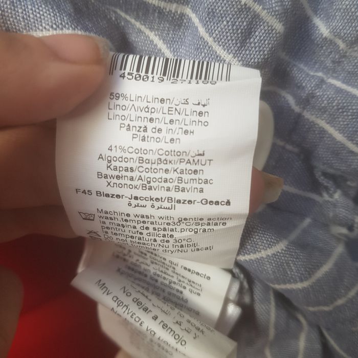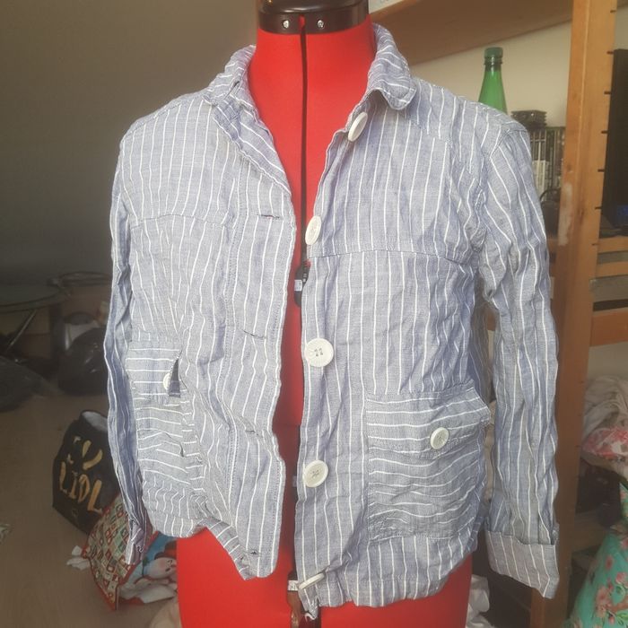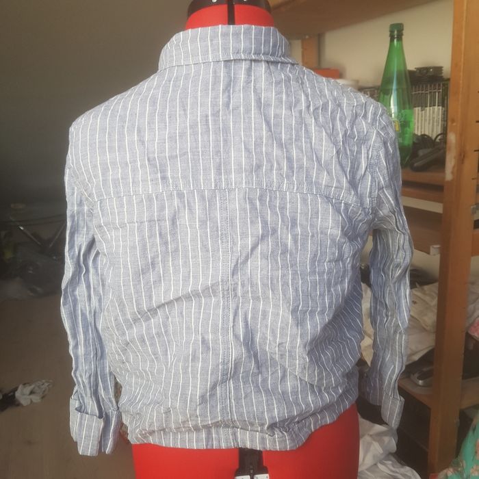 Veste légère bleue clair et blanche taille 40, mon et coton, excellent état bien que non repassée en l'état actuel 🌞