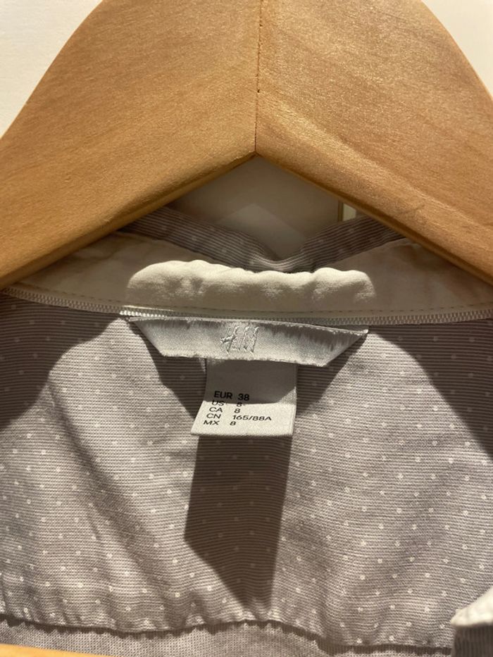 Chemisier gris cintrée à fin pois blanc, très peu porté