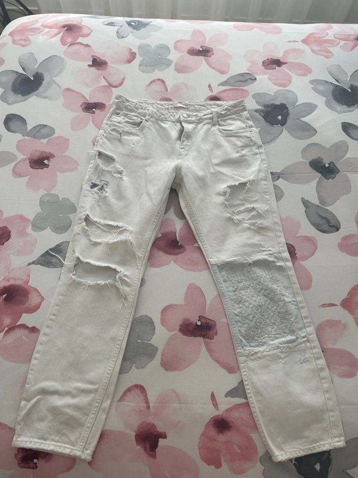 Jeans beige à trous Zara - photo numéro 1