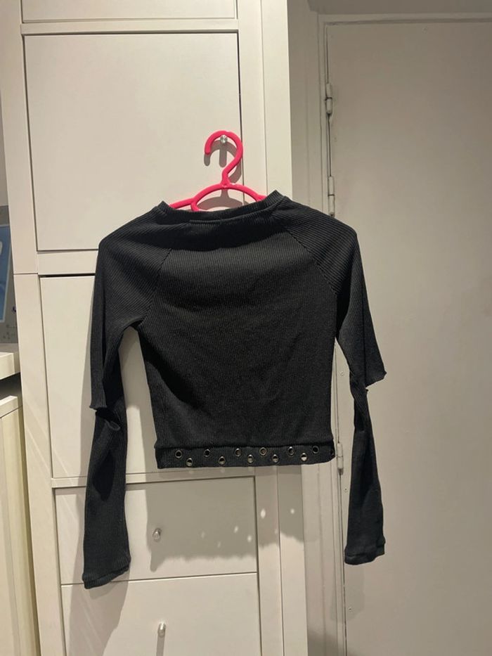 Top noir avec trous aux coudes et bas - photo numéro 3