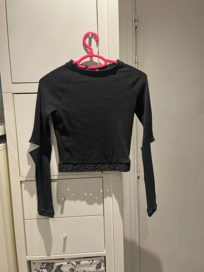 Top noir avec trous aux coudes et bas - photo numéro 1