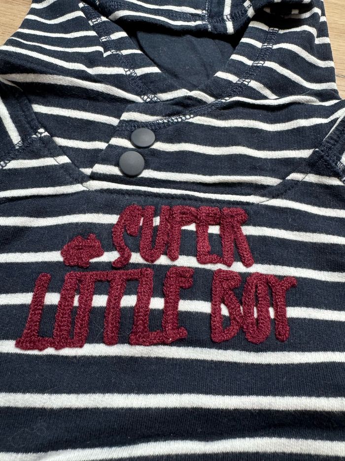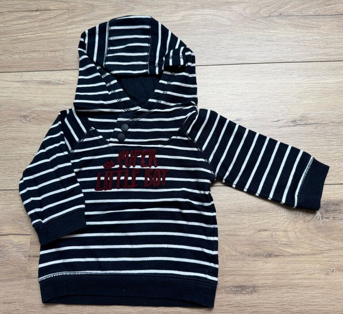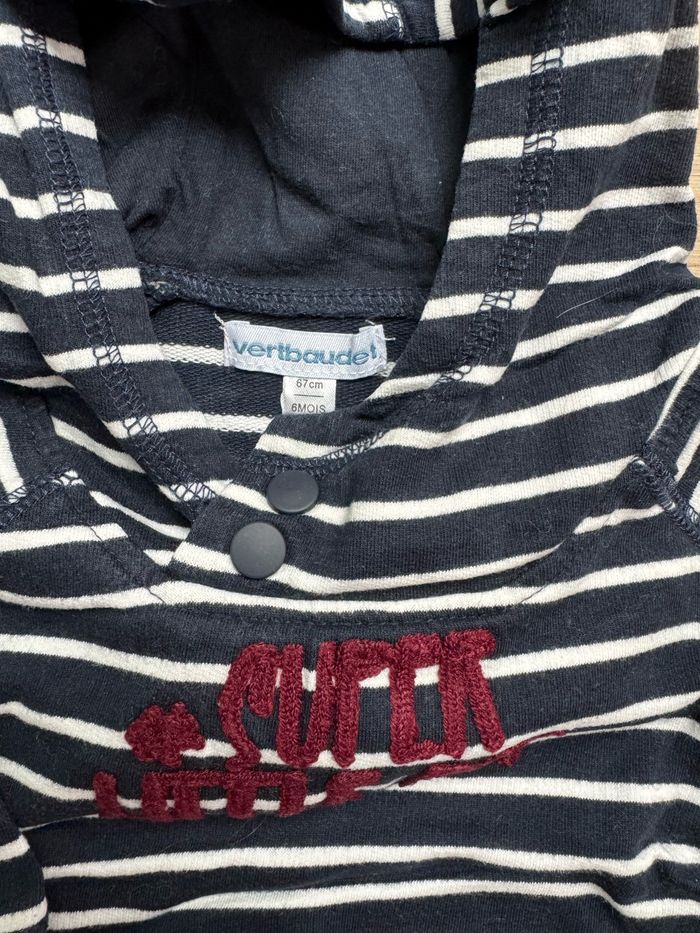 Sweat rayé bleu marine et blanc super Little boy Vertbaudet 6M à capuche