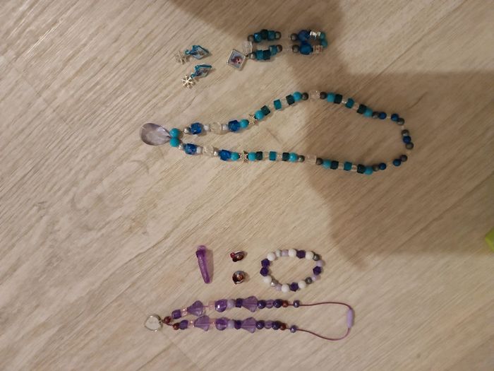 Bon état général, il n'y a plus l'autocollant sur les colliers (légère trace de colle) Boucles d'oreilles à pinces Je ne me rappelle plus la marque mais acheté chez JouéClub