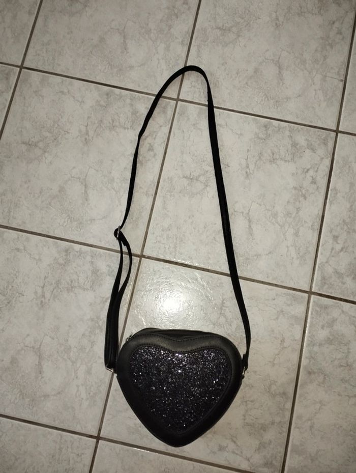 Sac fille en forme de coeur avec paillettes Couleur marine État neuf