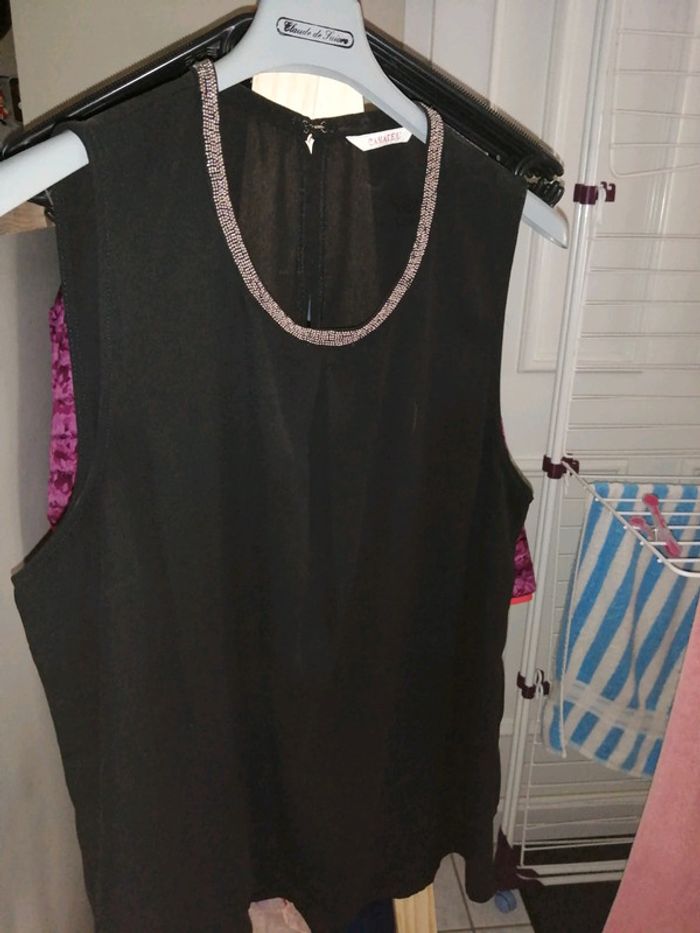 Haut fluide noir bijou au col taille 40 marque camaïeu