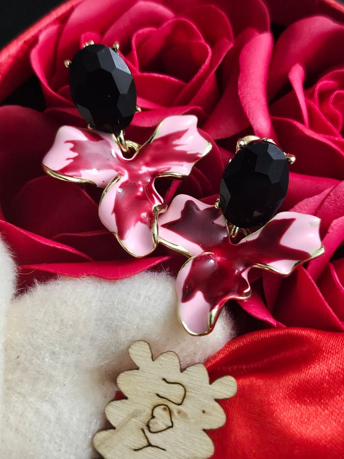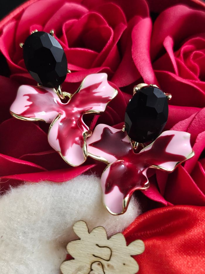 Boucles d oreilles fleurs et pierres onyx noir en argent sterling 925 - photo numéro 1