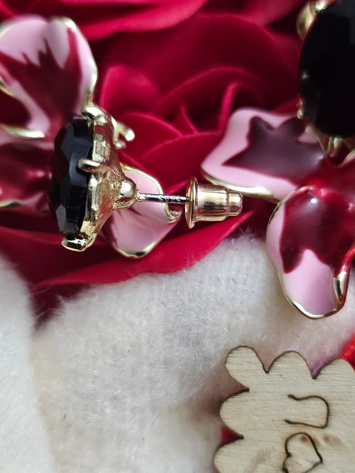 Boucles d oreilles fleurs et pierres onyx noir en argent sterling 925 - photo numéro 4