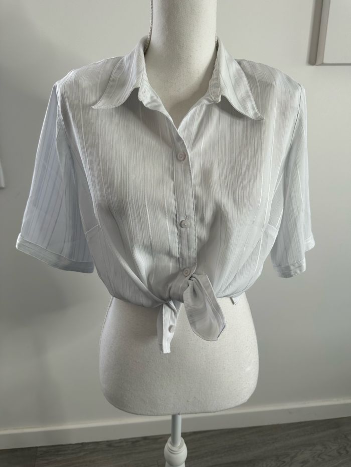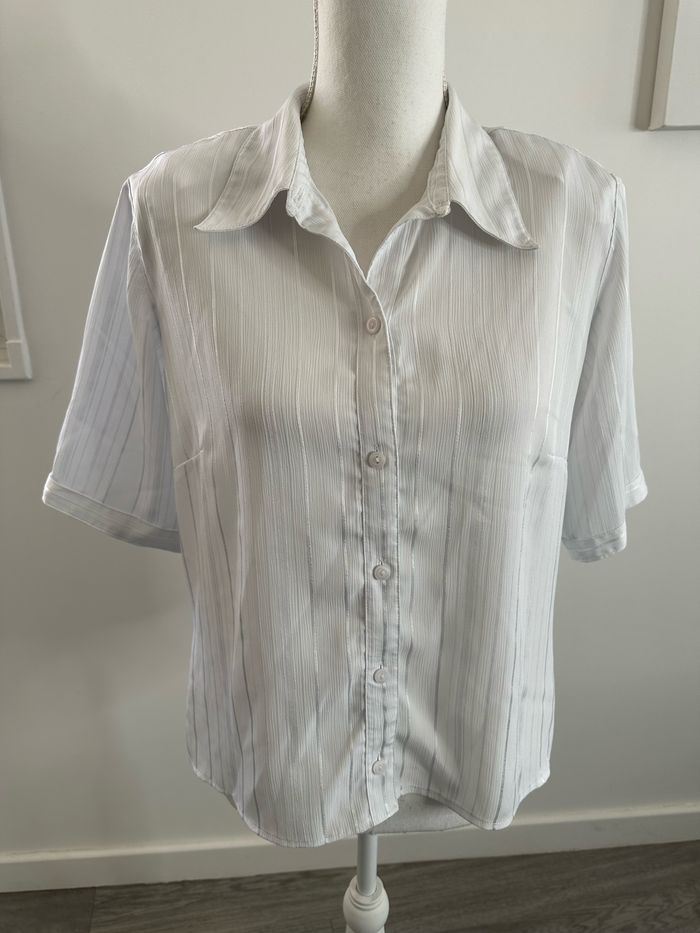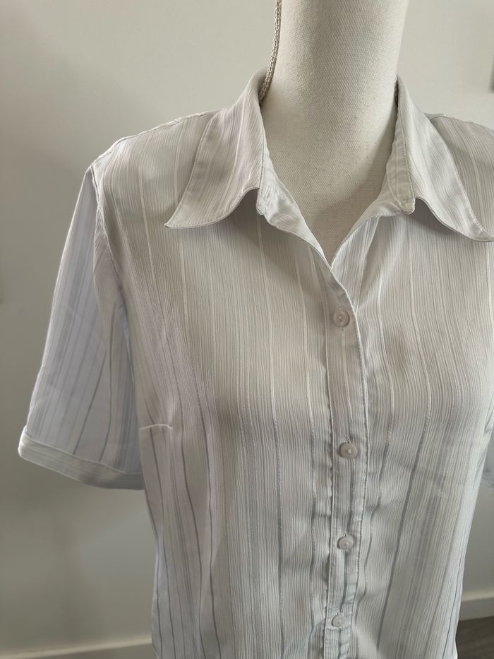 Chemisier blanc rayures satinées Vintage T38 M - photo numéro 5