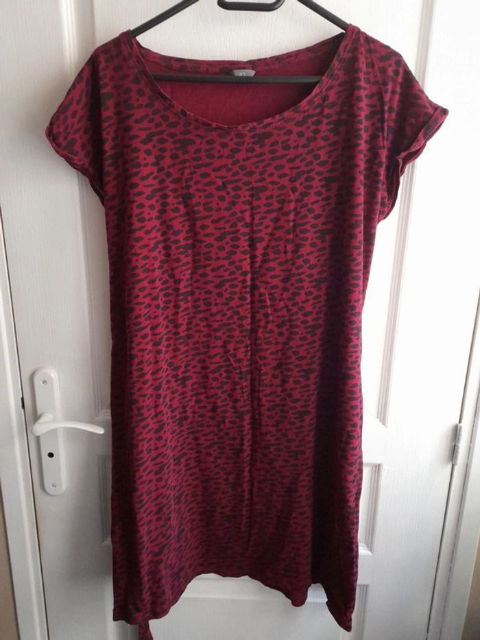 T-shirt long bordeaux tâches noires - photo numéro 1