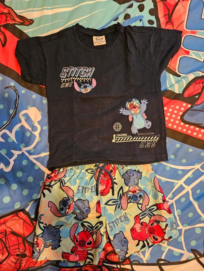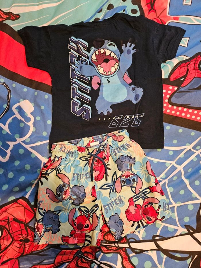 Ensemble stitch Short tee shirt Peu porté tres bon etat 4/5 ans Short indiqué 3/4 ans mais taille grand