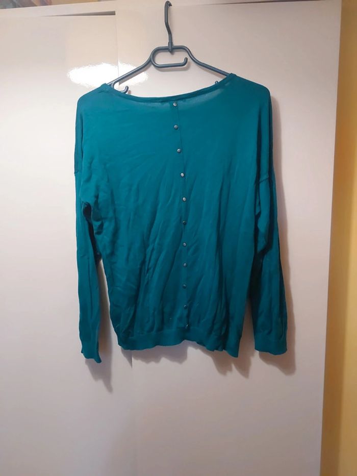 Pull fin col rond Faux boutons dans le dos La couleur est plutôt vert bleu