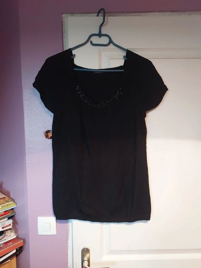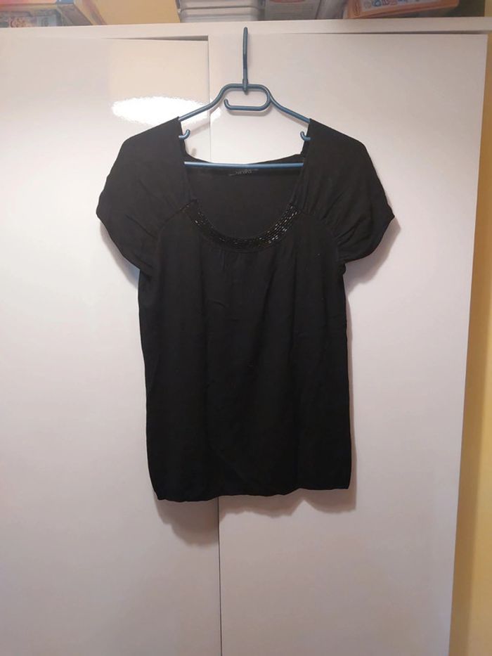 Pull fin à manches courtes Détails au niveau du col