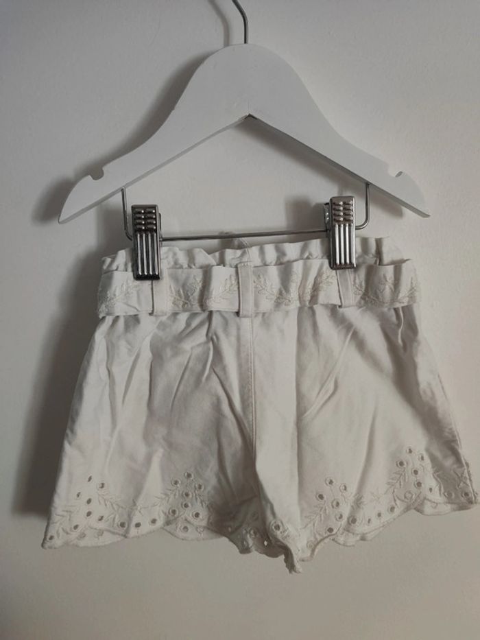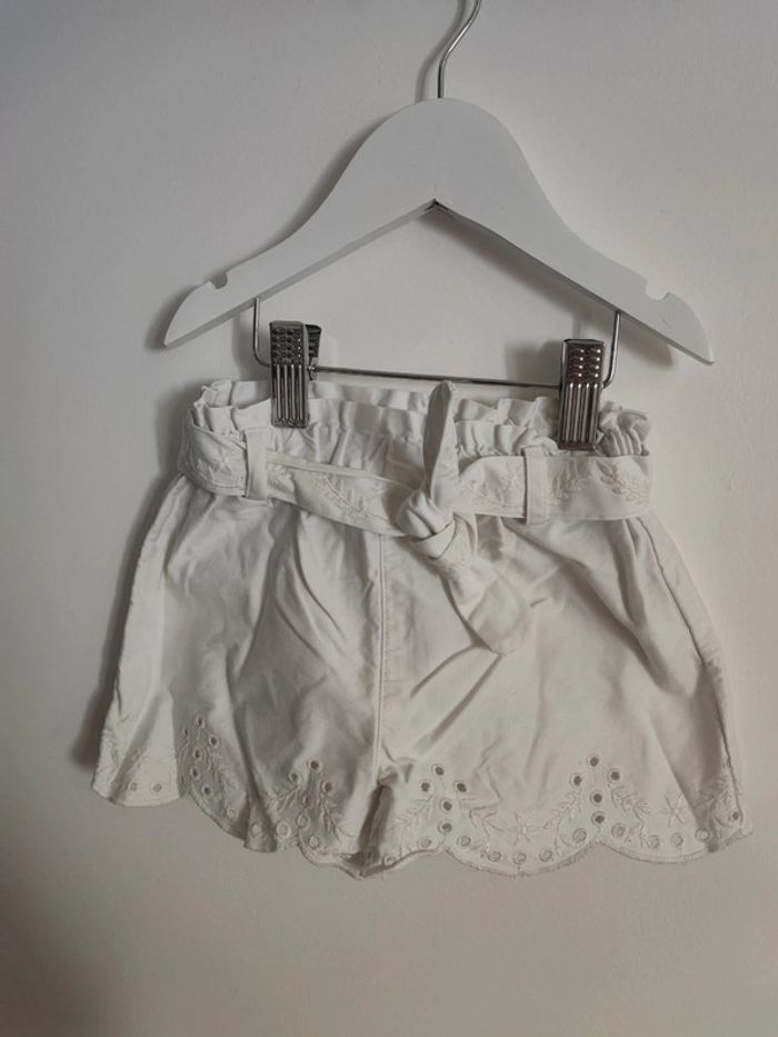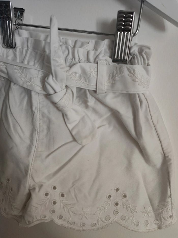 Short tape à l'oeil 18 mois. Blanc, broderies anglaises sur le bas, ceinture brodée. Très bon état. Beaucoup d'autres vêtements à vendre du 9 mois au 4 ans.