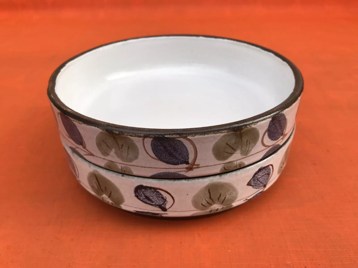 2 coupelles empilables Faïence de Niderviller (Moselle) Manufacture France Collection " Prunes " Diamètre : 170cm Hauteur : 45mm Poids total : 880grs