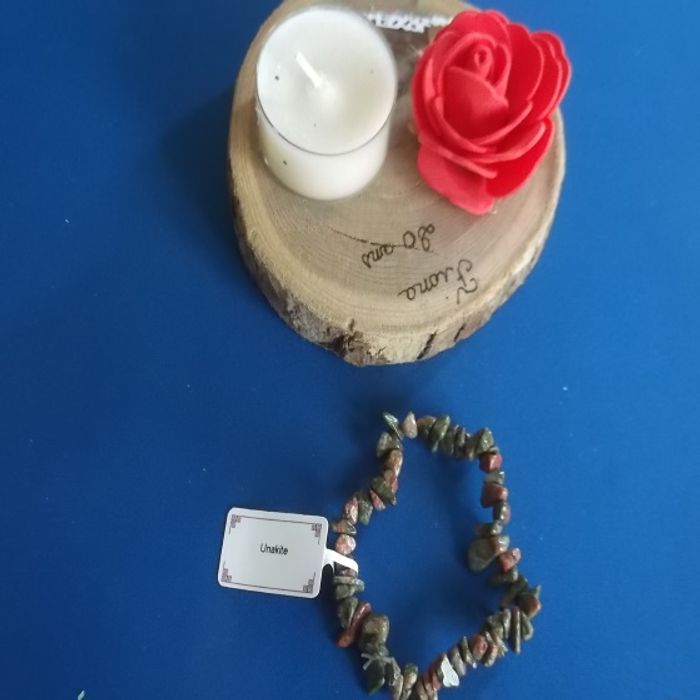 pour voir toute mes annonces bijoux tapez #pat62_bijoux Bracelet baroque Unakite neuf 14cm/18 L'unakite est une pierre de vision qui nous aide à visualiser le passé et l'avenir afin d'identifier nos problèmes et les résoudre. Elimine la pollution électromagnétique. ° En méditation, elle agit le 6ème chakra, avant et arrière de le tête, elle peut nous délivrer des expériences traumatisantes des vies pasées.° Soulage les rhumatismes et l'arthrose. ° C'est une pierre de vision qui nous aide à visualiser le passé et l'avenir afin d'identifier nos problèmes et les résoudre.