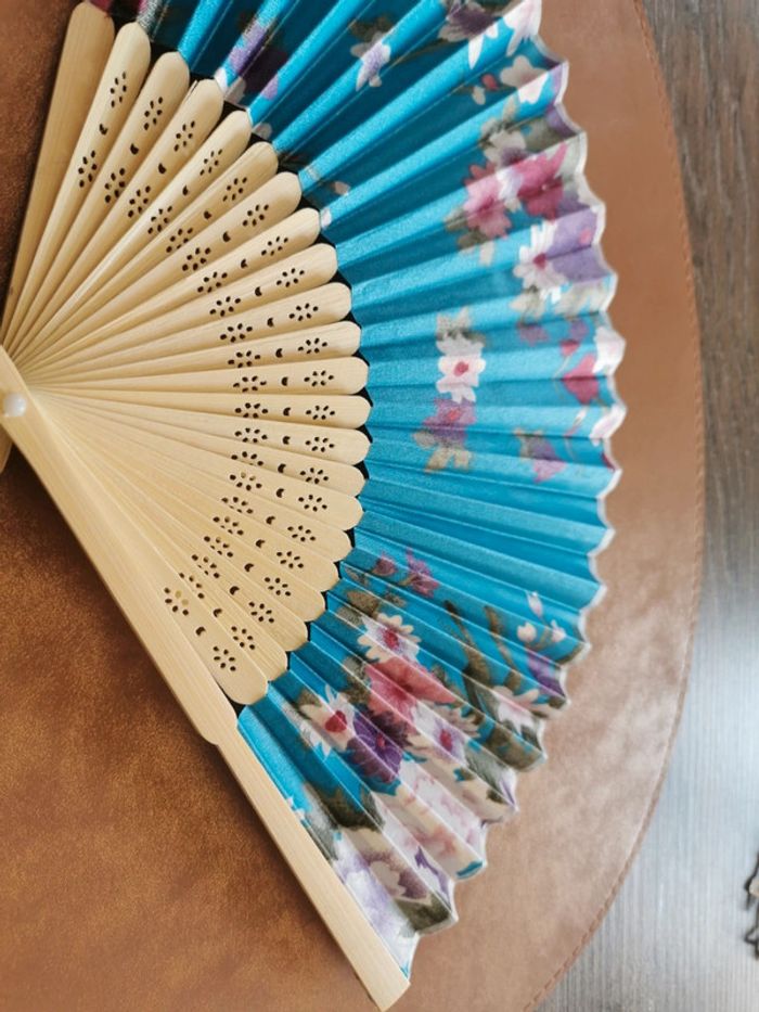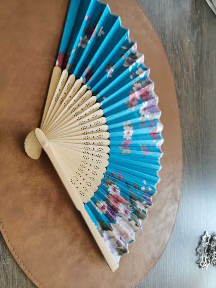 Éventail style japonais fleurs bleu - photo numéro 2