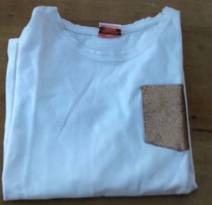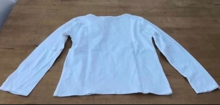 Tee shirt manche longue blanc avec petite poche doré « petite tache en bas du tee shirt ) voir photo