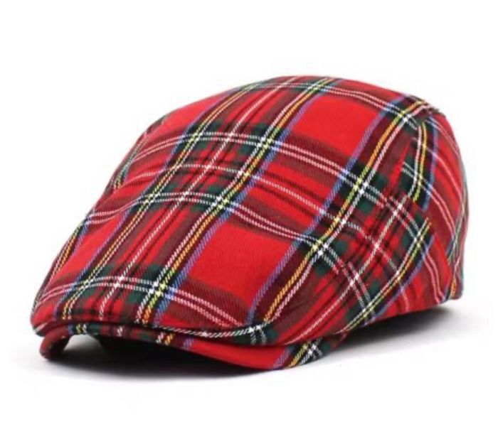Béret Vintage Ecossais - Rouge Taille ajustable
