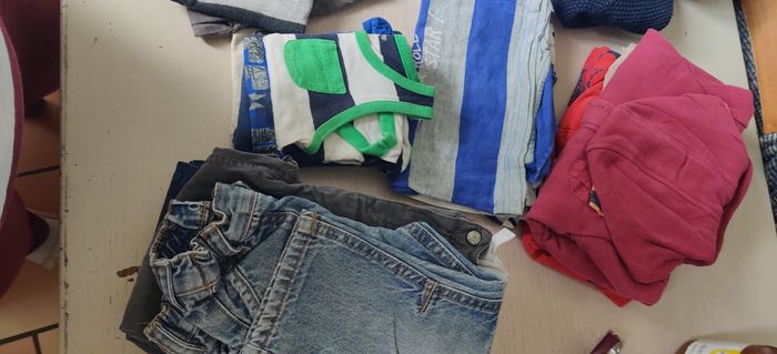 Lot comprenant un gros gilet, 3 gilet mi-saison, 3 pull, 4 t-shirt manche longue, une chemise manche courte, 7 pantalons, un pull manche courte, un débardeur,un bodies débardeur, 2 t-shirts, un pantacourt et un bob. Le tout pour 14€. En bon état voir très bon état
