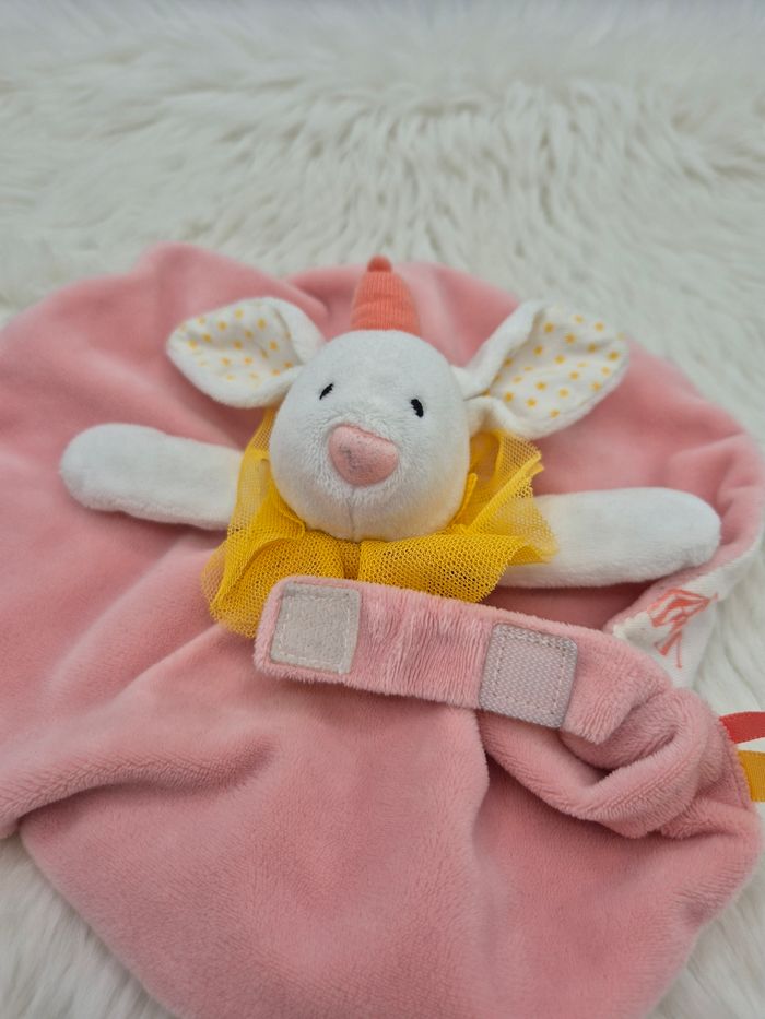 Doudou plat Lapin rose blanc jaune « fantastic circus » Génération Z