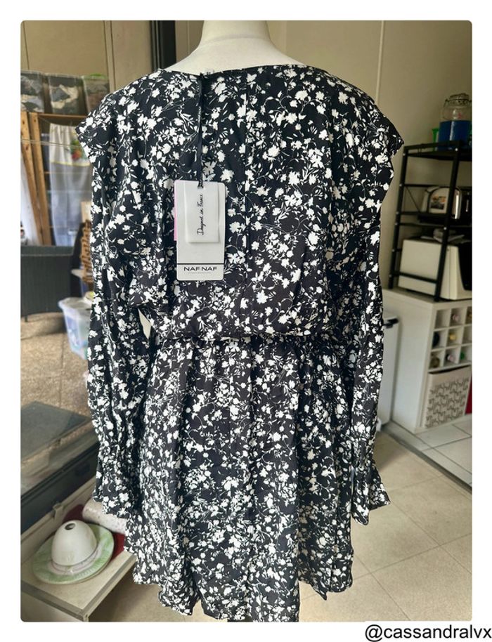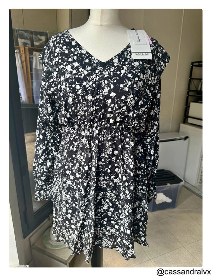 Robe fleurie noire et blanche Coline Naf Naf - photo numéro 1
