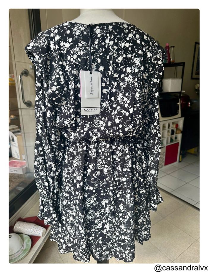 Robe fleurie noire et blanche Coline Naf Naf - photo numéro 3