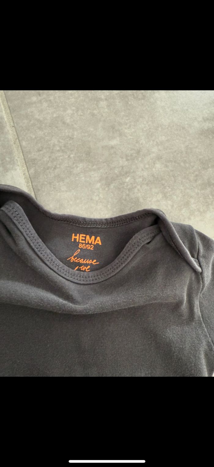 Porté. Couleur anthracite mieux que sur la photo. 86/92 = 24-36 mois car extensible. Super matière. J'adore les bodys Hema. Encore plein de vêtements à mettre dans mon dressing. Hésitez pas à vous abonner et à lire mon profil. 😉